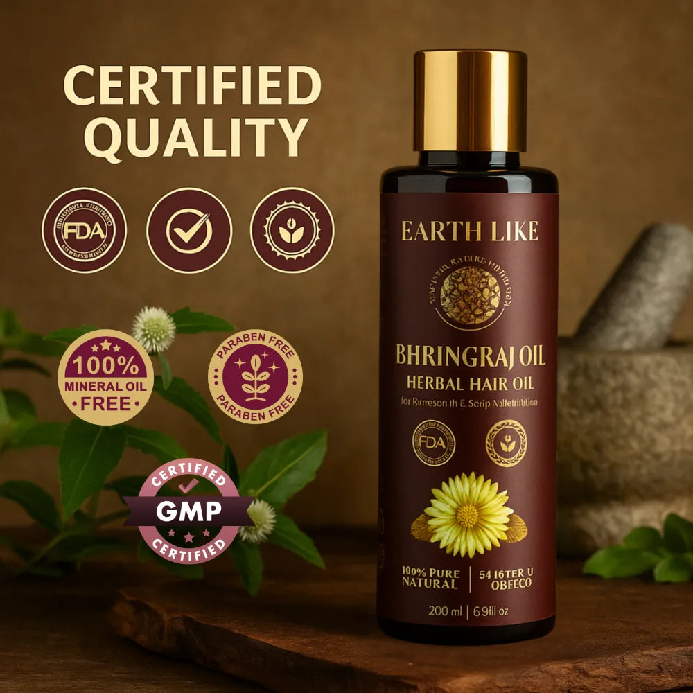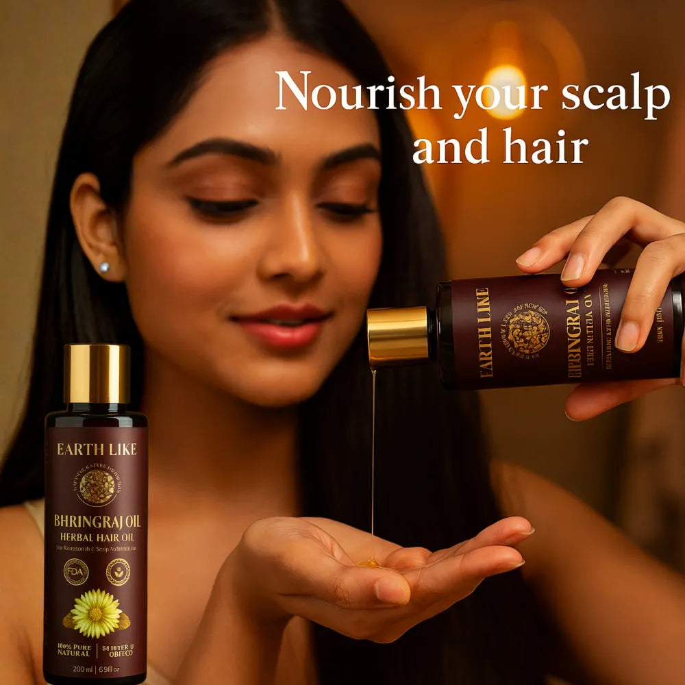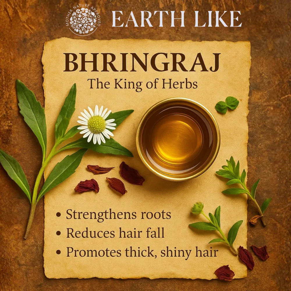 EarthLike’s Cold-Pressed Bhringraj Hair Oil is made from the finest Bhringraj (Eclipta alba), traditionally known as Keshraj — the “King of Hair.”