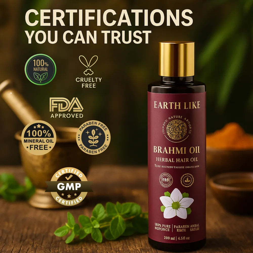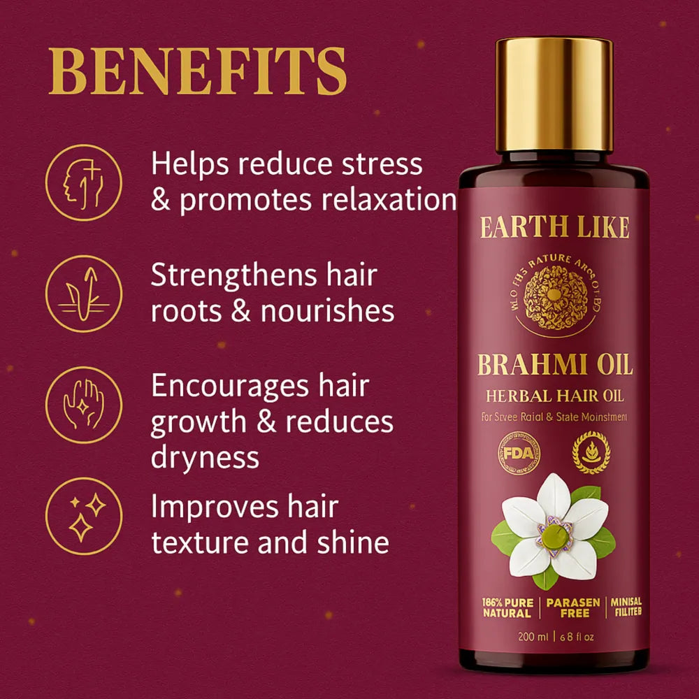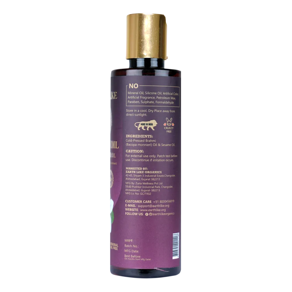 EarthLike’s Cold-Pressed Brahmi Hair Oil is a gentle blend of pure Ayurvedic Brahmi (Bacopa monnieri) and nourishing base oils that soothe your scalp and your senses.