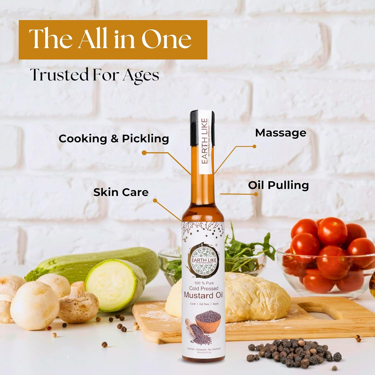 - Elevate your cooking with Earth Like Brand cold-pressed mustard oil, perfect for frying, sautéing, and enhancing the flavor of your favorite dishes.
